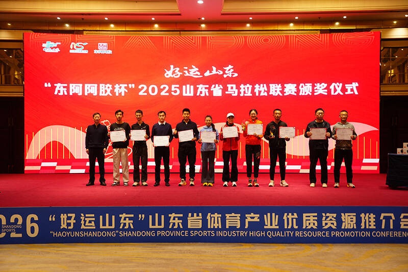 齐鲁网·闪电新闻12月1日讯 11月28日,“好运山东”“东阿阿胶杯”2025山东省马拉松联赛颁奖仪式在德州举行。十六地市体育系统代表和优秀跑者齐聚一堂,共同见证了这一荣耀时刻,为历时全年的激情奔跑画上了一个璀璨的句点。