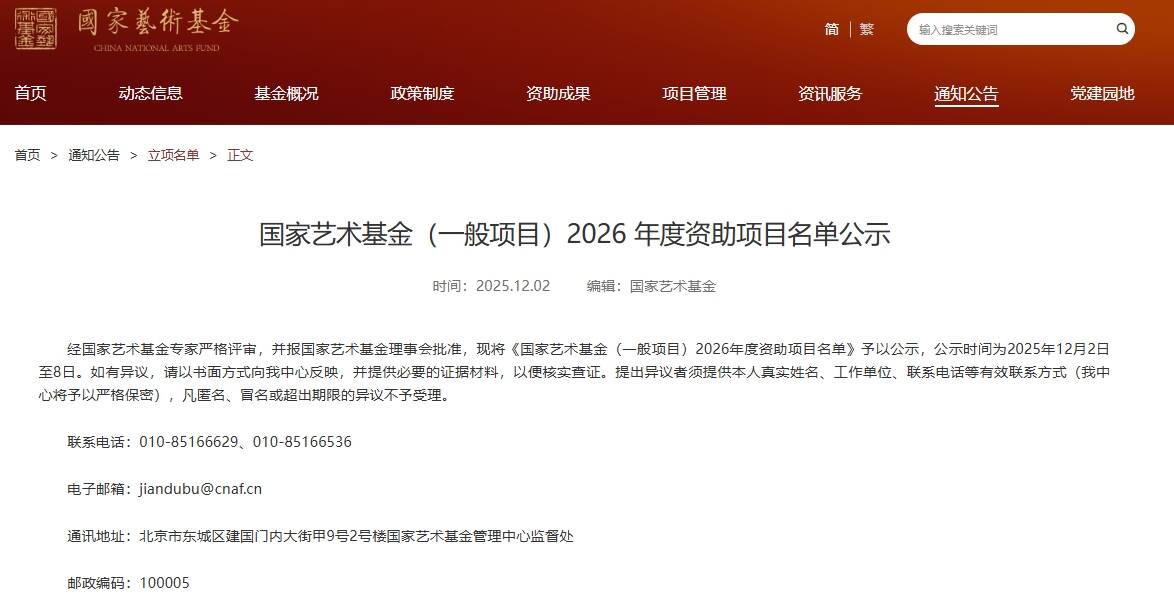 齐鲁网·闪电新闻12月3日讯 12月2日,国家艺术基金管理中心公示《国家艺术基金(一般项目)2026年度资助项目名单》,由德州市文化馆申报的小品《全面曝光》成功入选中小型剧(节)目和作品创作项目类别,成为德州本土文艺创作获得国家级艺术基金支持的重要成果,彰显了德州群众文艺创作的坚实实力与鲜明特色。